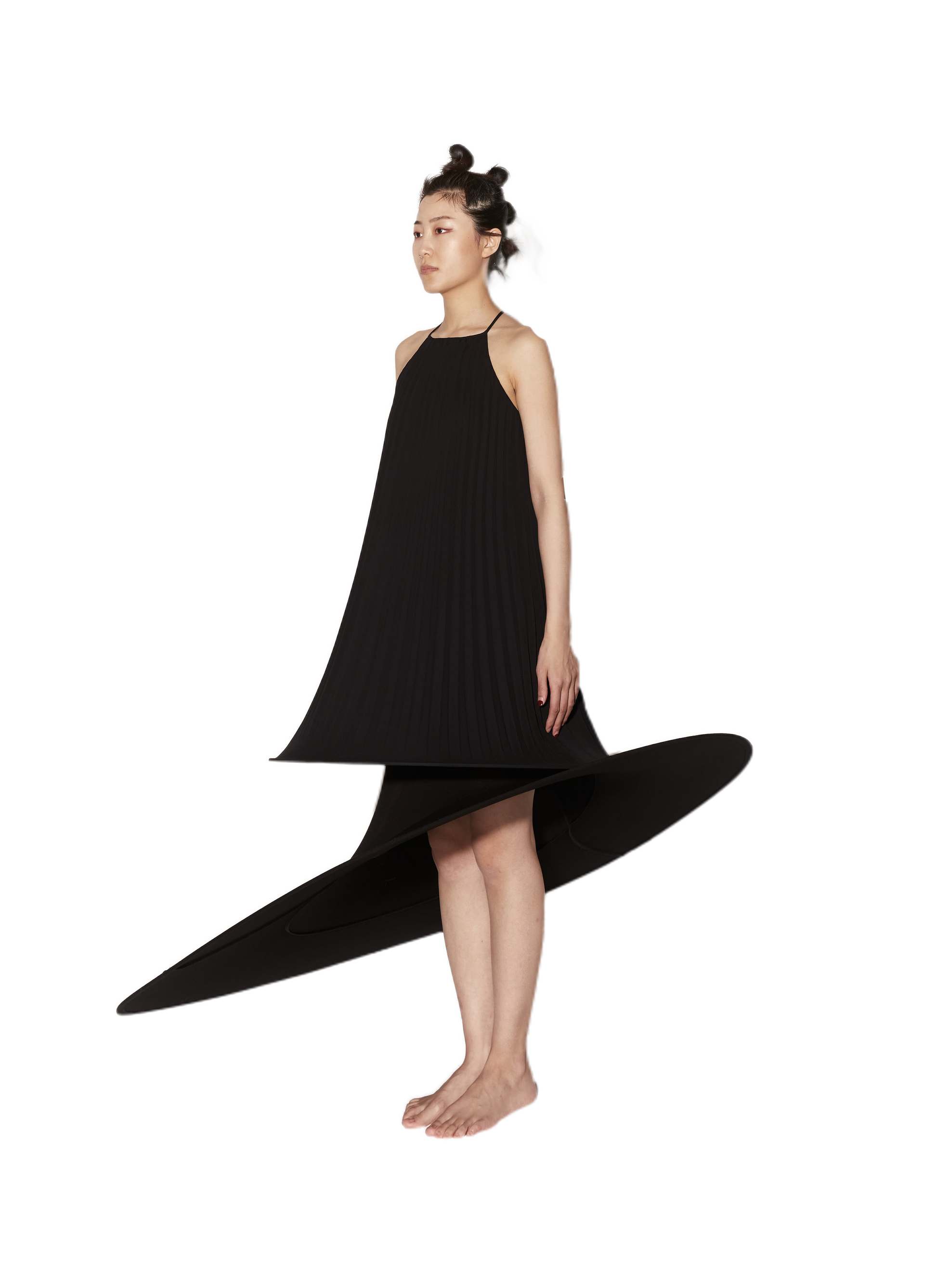 The Pleated Swinging Asymmetrical Skirt is an tilted version of our exaggerated lampshade style pieces. Equipped with an elastic waistband, the skirt will fit and enhance any body type. Finished off with an asymmetrical version of our built in boning at the hem the garment the skirt forms a off center take of our iconic Bad Binch TongTong "Hoop" silhouette. A micro ruffle pleat detailing decorates the stretchy body of the garment, forming a twister like effect when in movement. The garment is high stretch, and is made to fit diverse bodies. Made in China. |