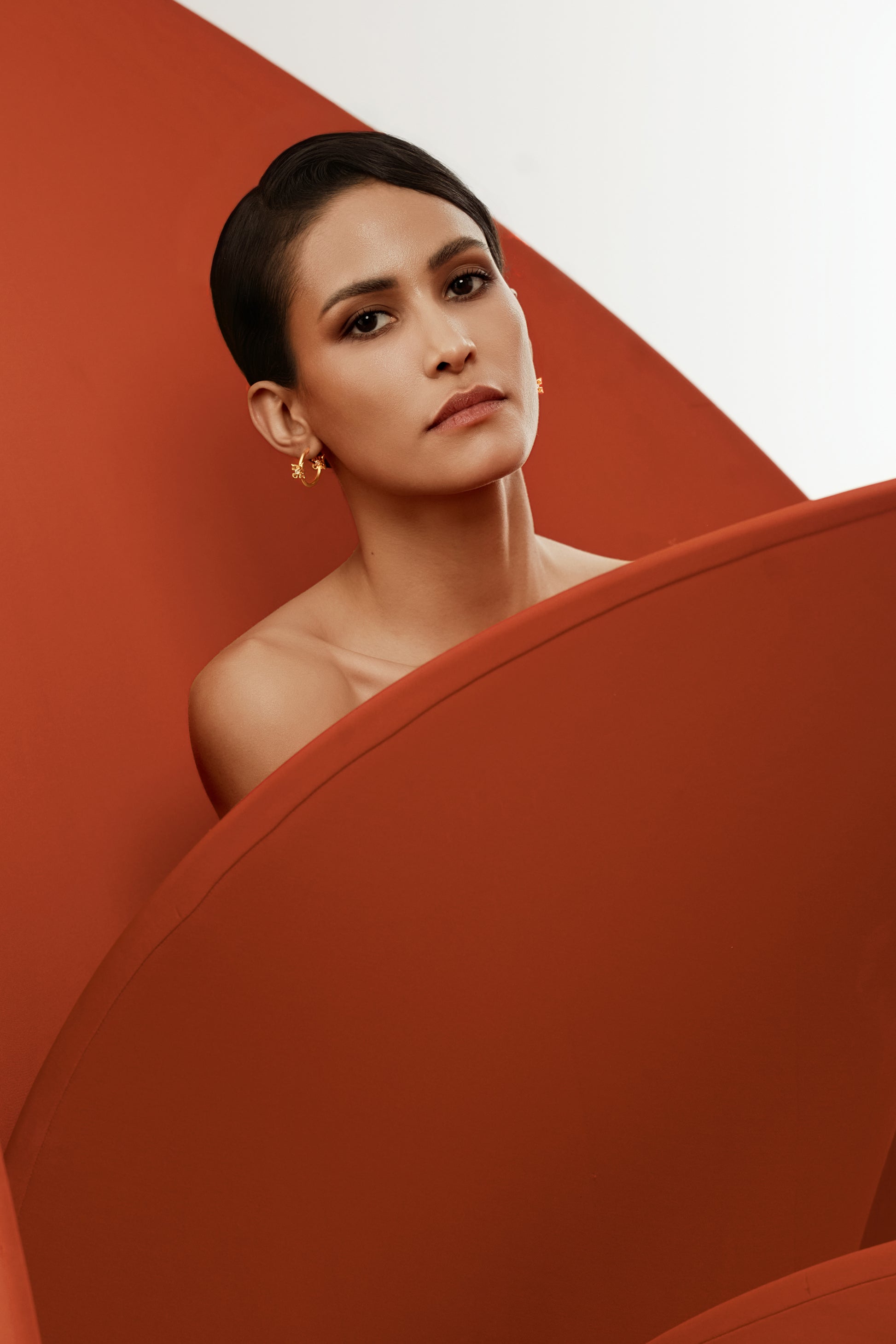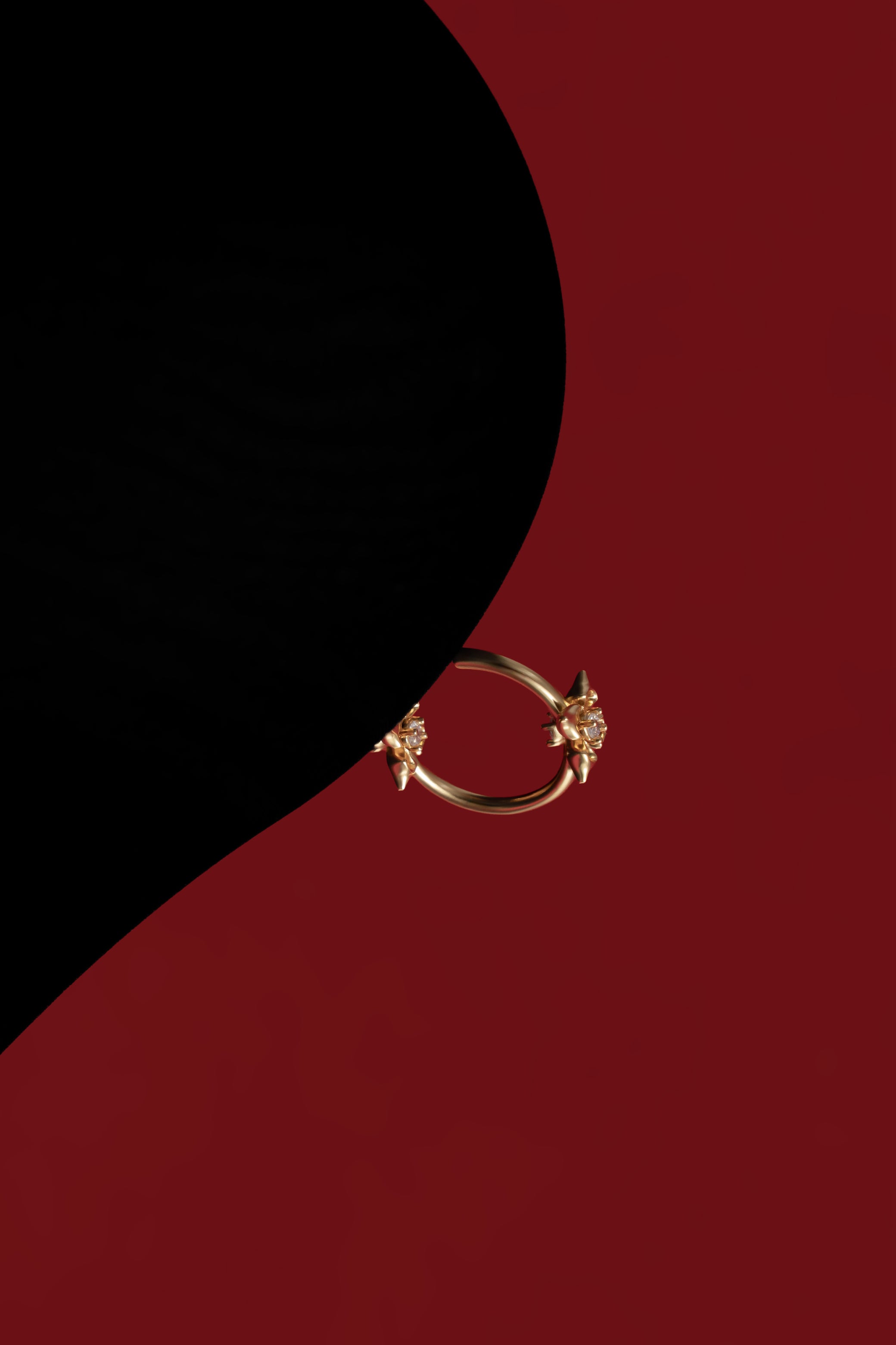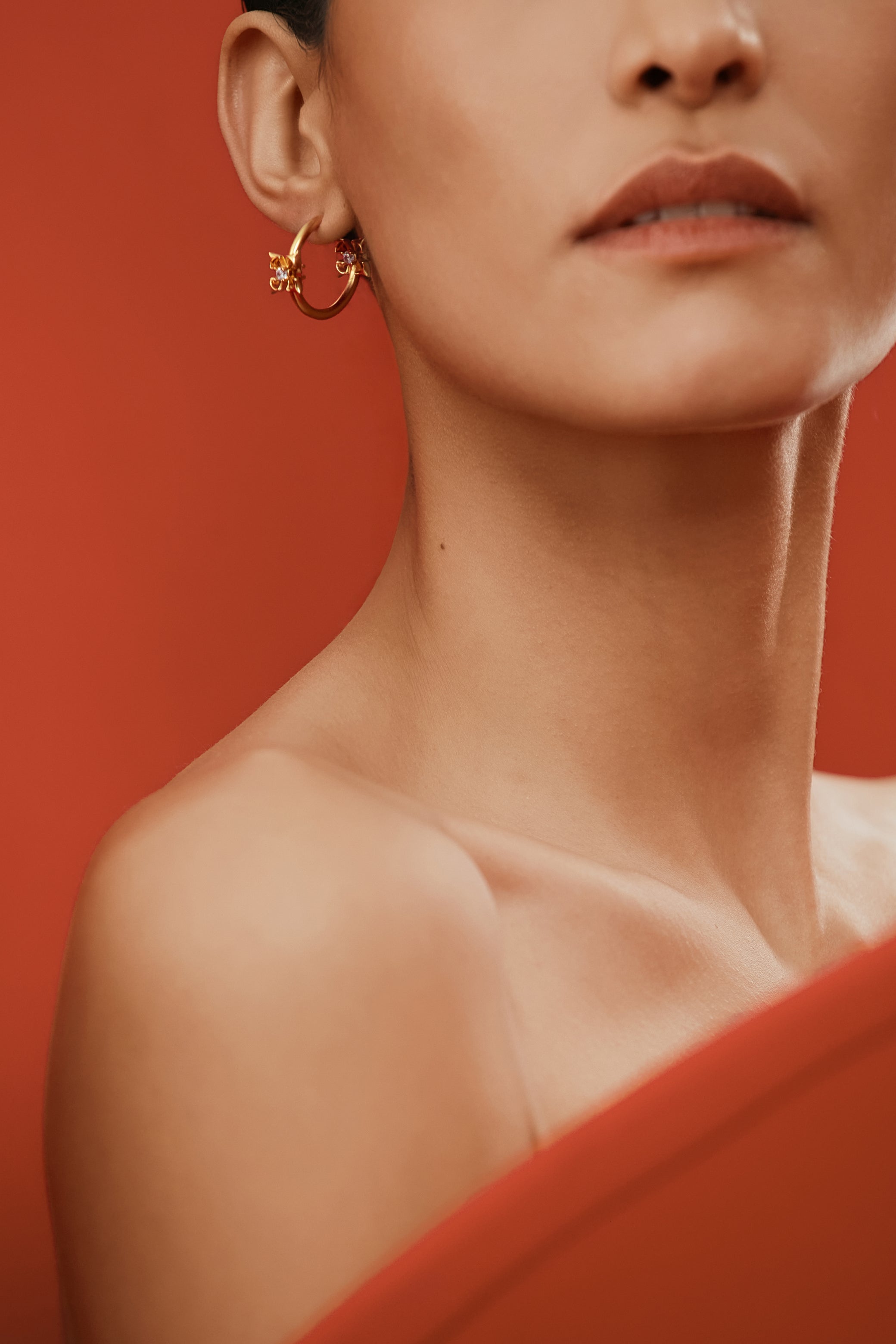 Small hoop earrings accented with a cross and calla lily motif. Finished in 22k gold-plating, designed for understated, everyday movement.