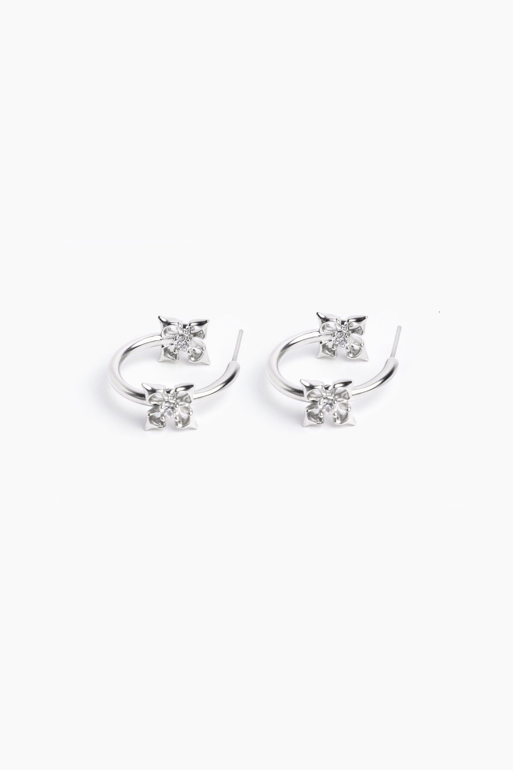 Lily Cross Mini Hoops - Silver