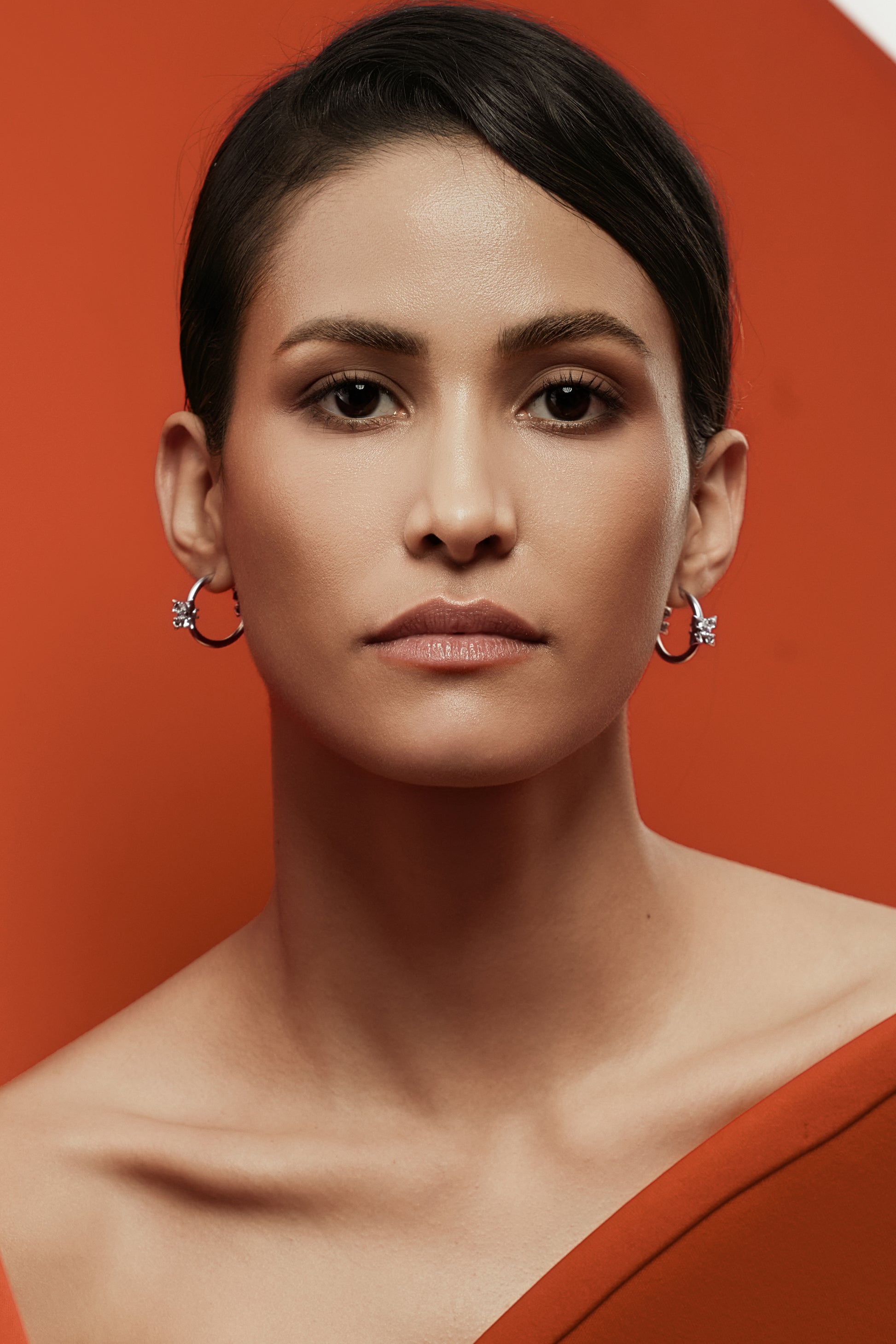 Small hoop earrings accented with a cross and calla lily motif. Finished in platinum plating, designed for understated, everyday movement.