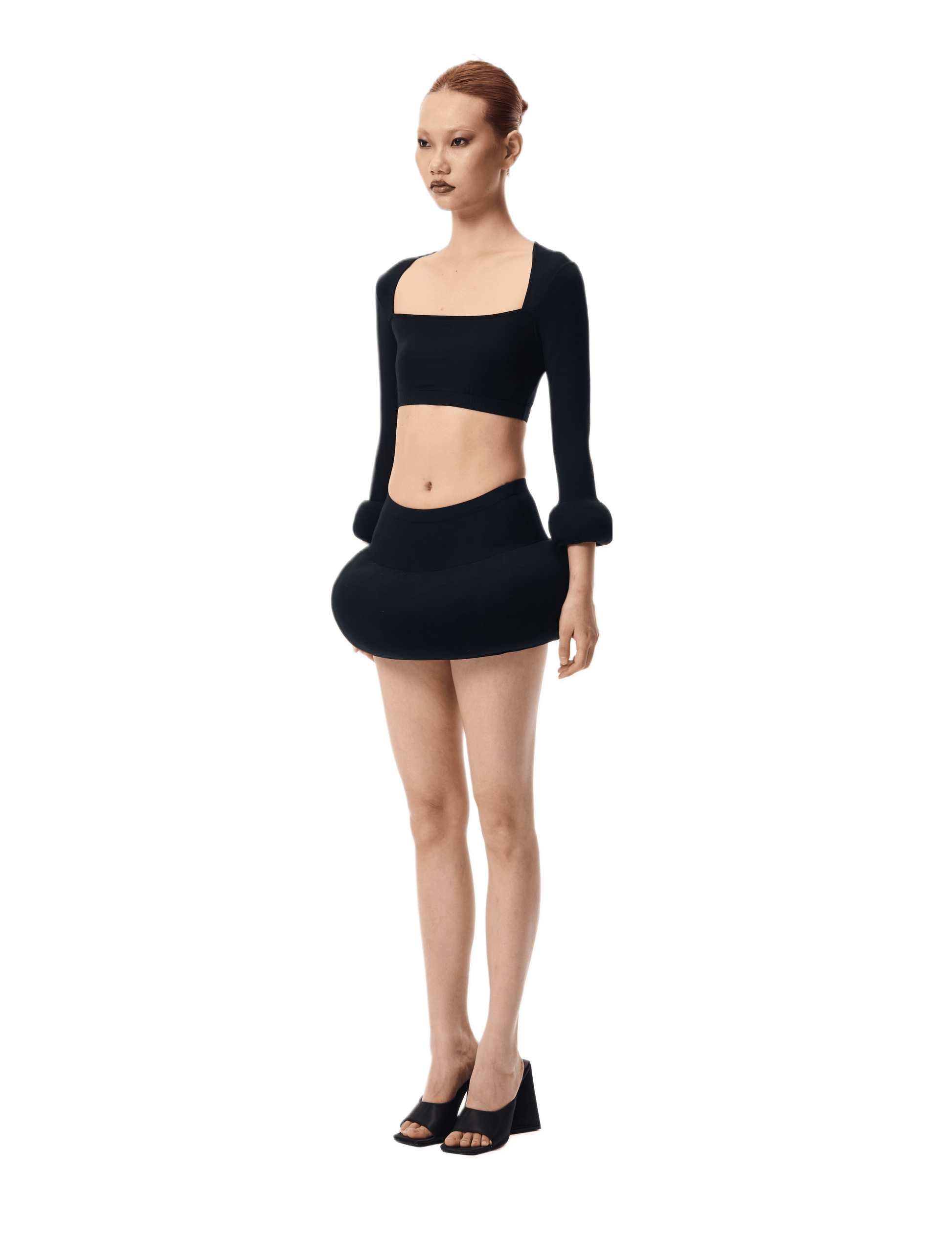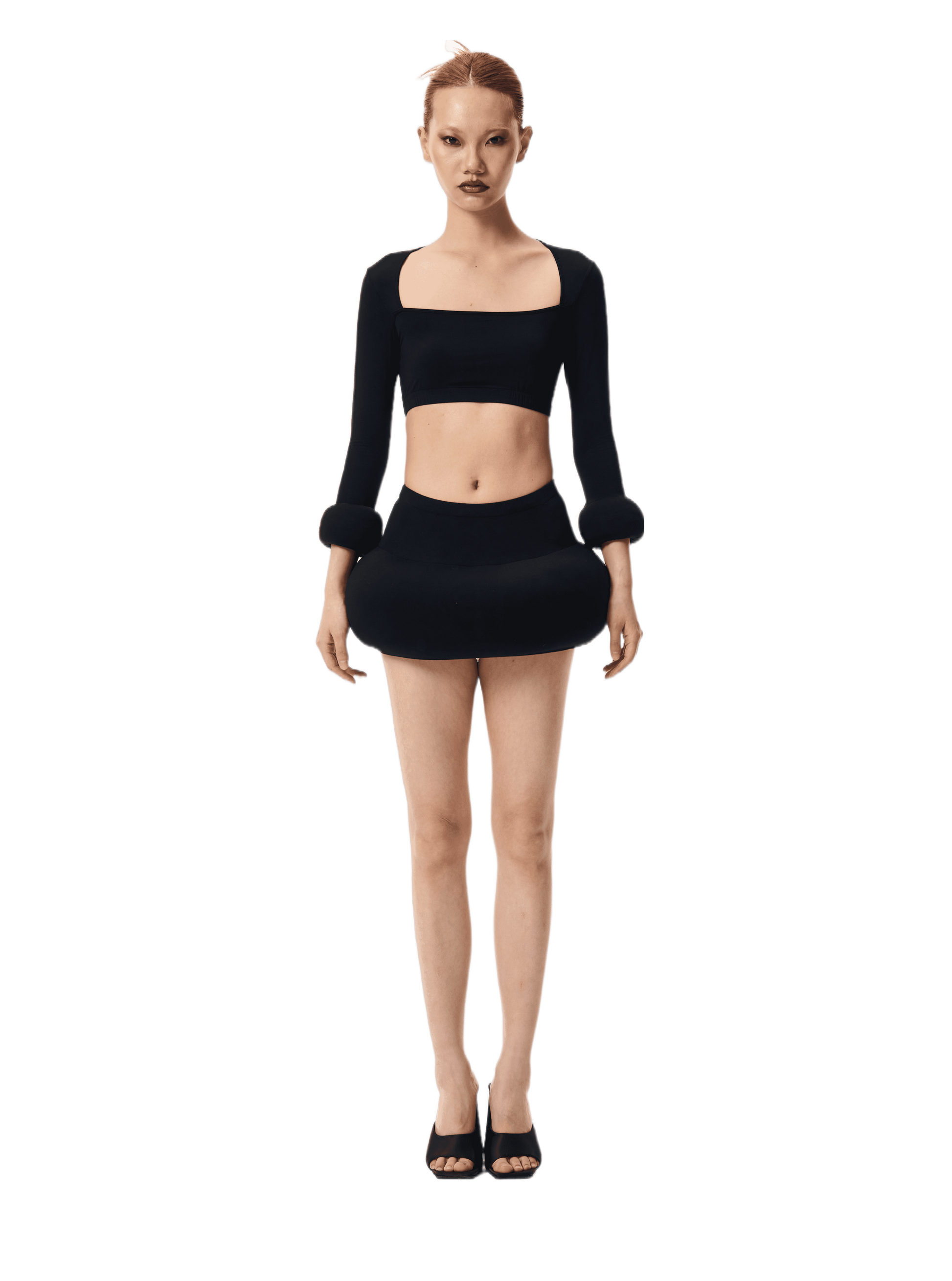 The Cloud Mini Skirt by Bad Binch TongTong is a fresh interpretation of the classic "little black dress" in a shorter, flirtatious form. Admire the sculpted elegance of this enchanting masterpiece, where an elastic waistband ensures a comfortable and flattering fit. The Cloud Mini Skirt is adorned with a padded hem, adding a playful touch to the design. Revel in the transformative allure of this mini skirt, creating a harmonious blend of classic and contemporary elements for a captivating statement on any occasion. 11% Spandex Made in China. |