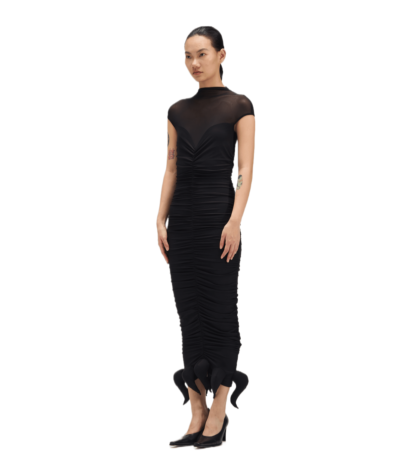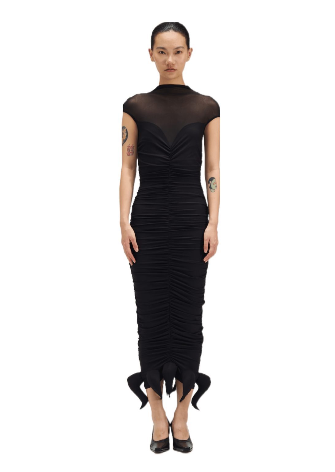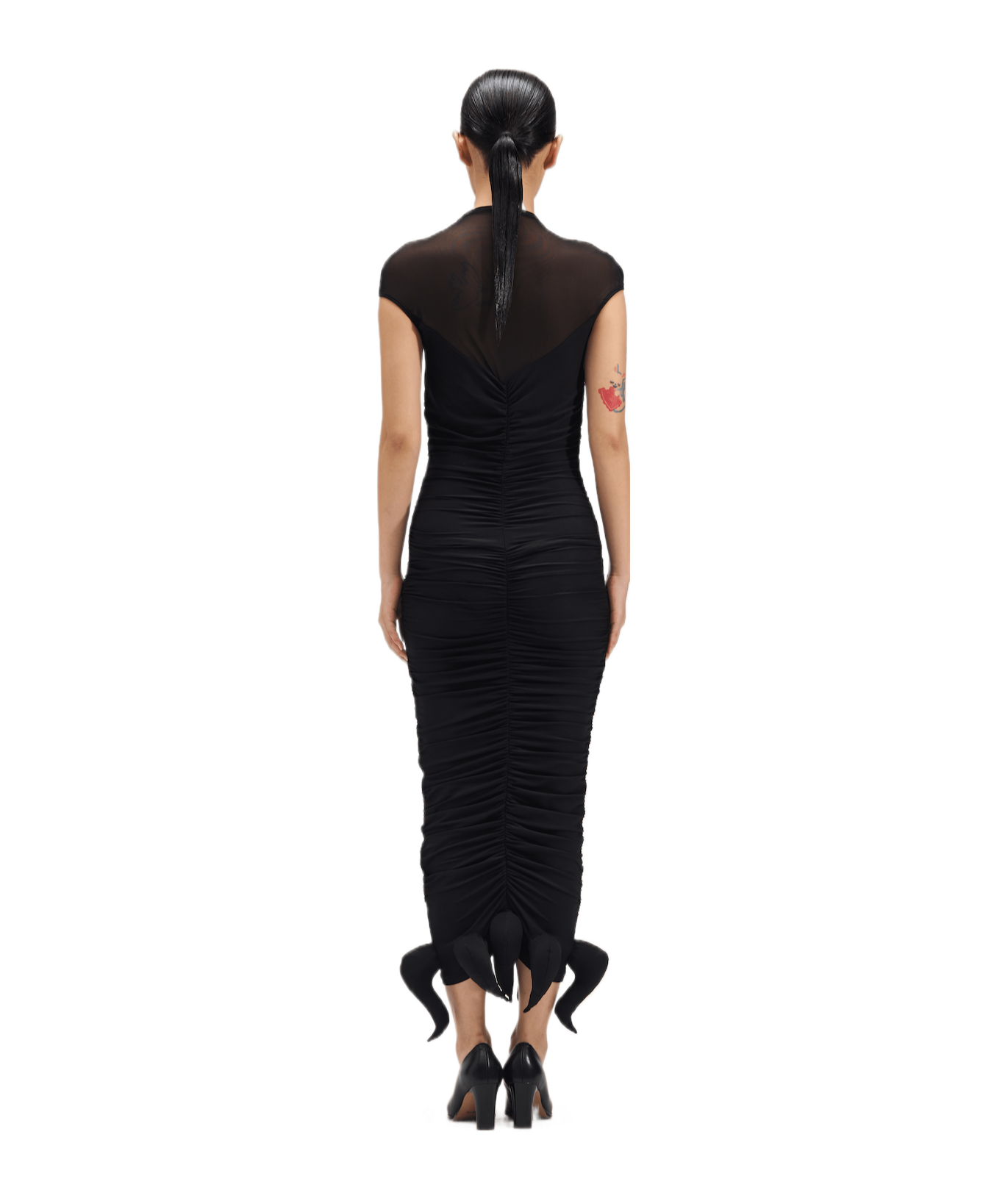 Revitalize your wardrobe with the Octopus Dress – a statement piece that adds a touch of intrigue to your attire. Featuring an hourglass silhouette, high neck construction, ruching at the front, and a sweetheart neckline with sheer paneling, this dress boasts octopus tentacle detailing at the hem. Redefine your fashion statement with this unique and stylish piece. 85%Nylon 15%Spandex 96%Polyester 4%Spandex Made in China. The model is 5'8" and is wearing size S. |