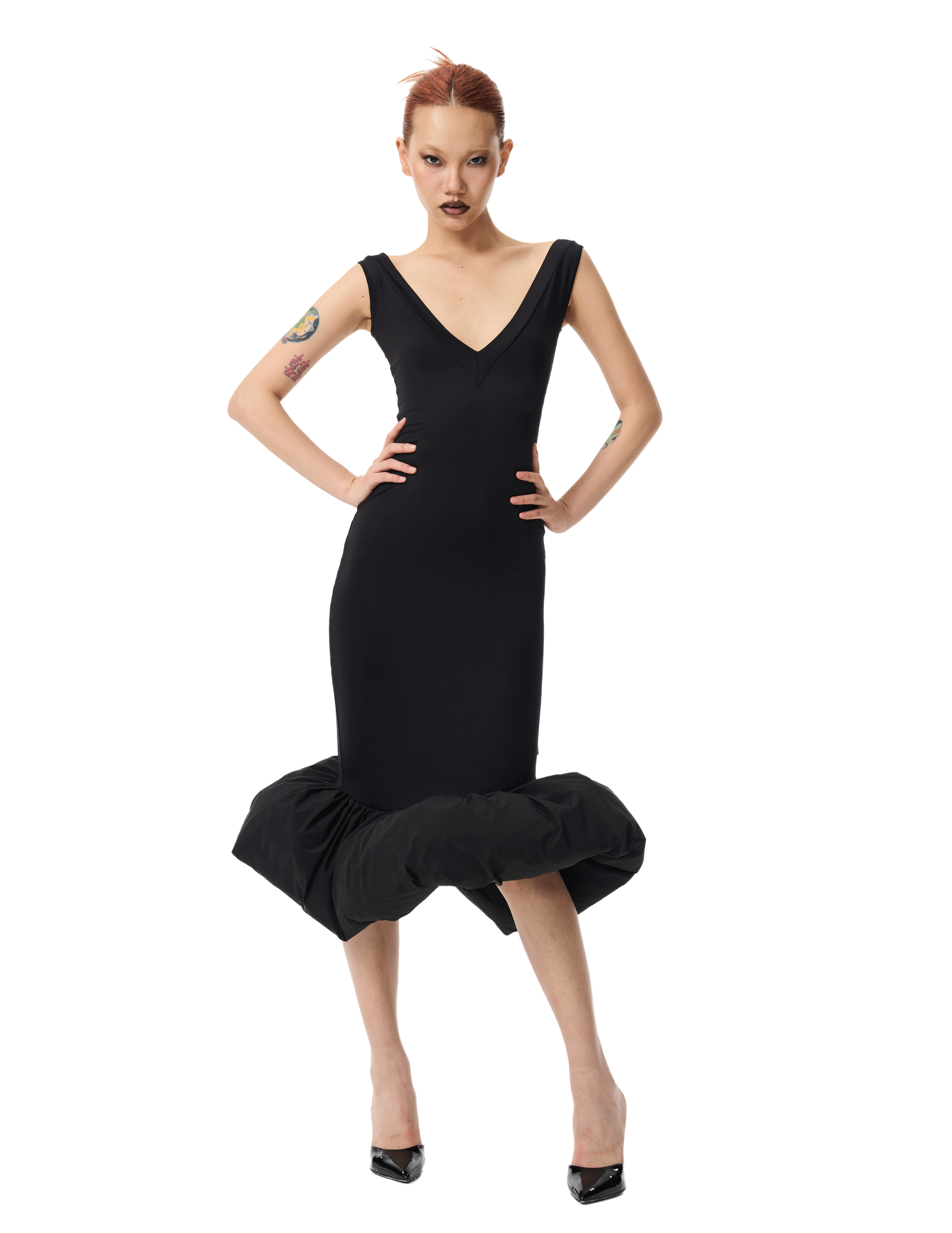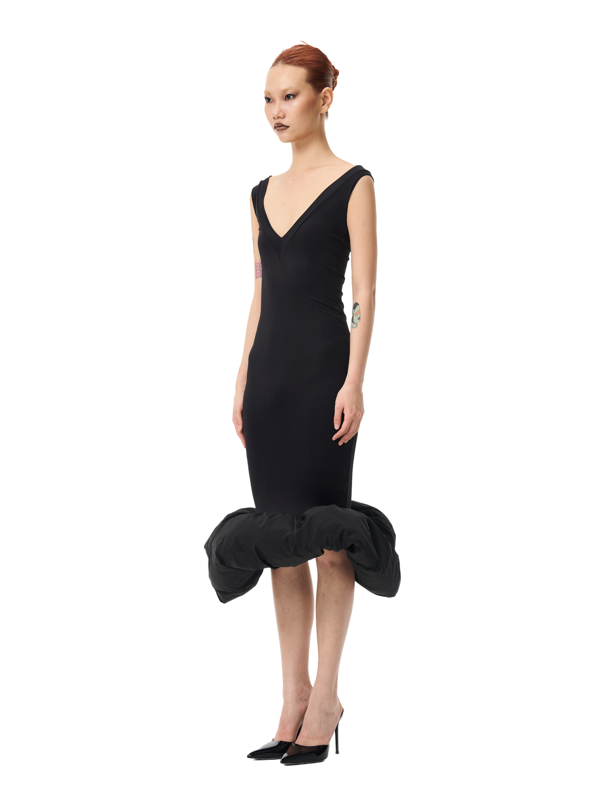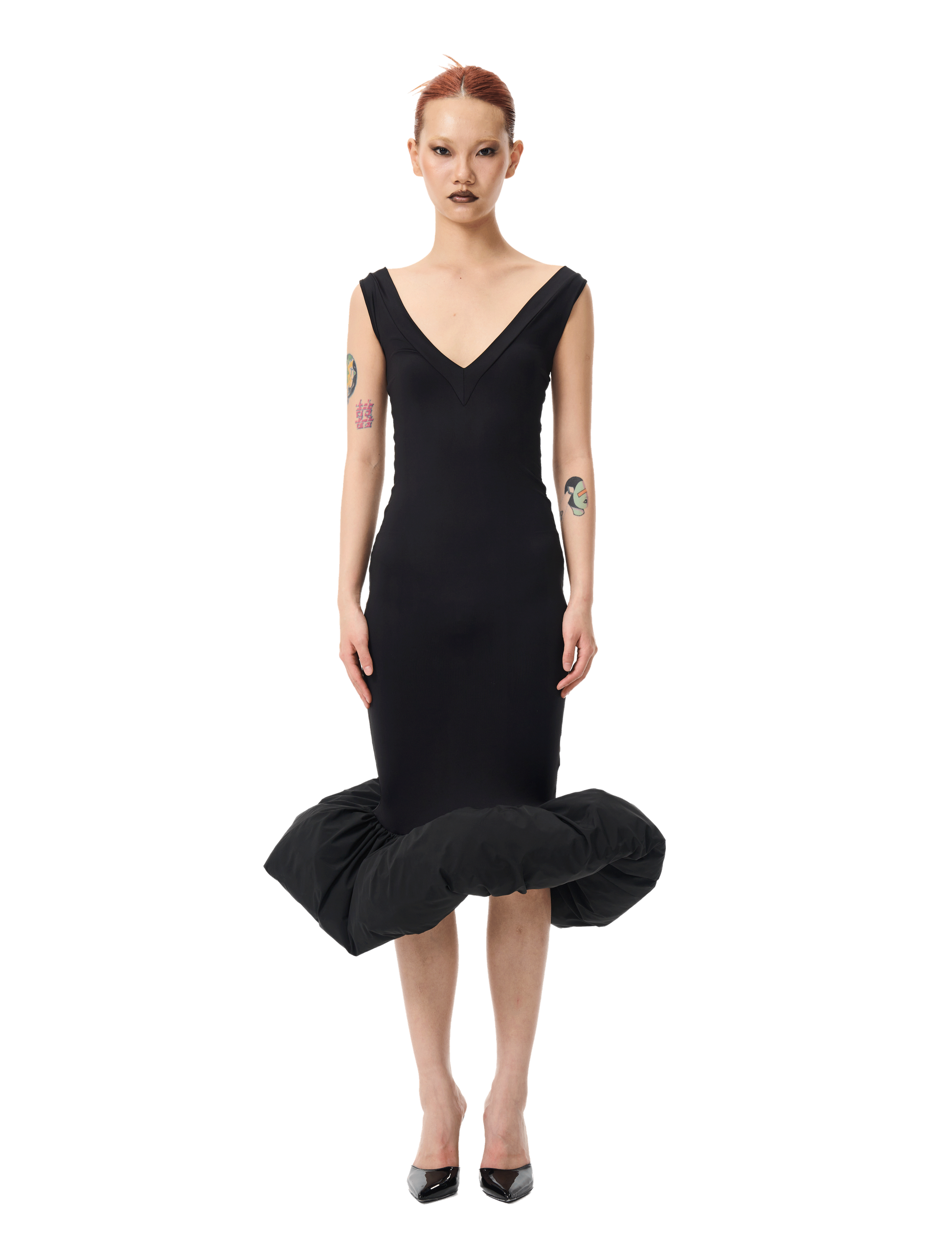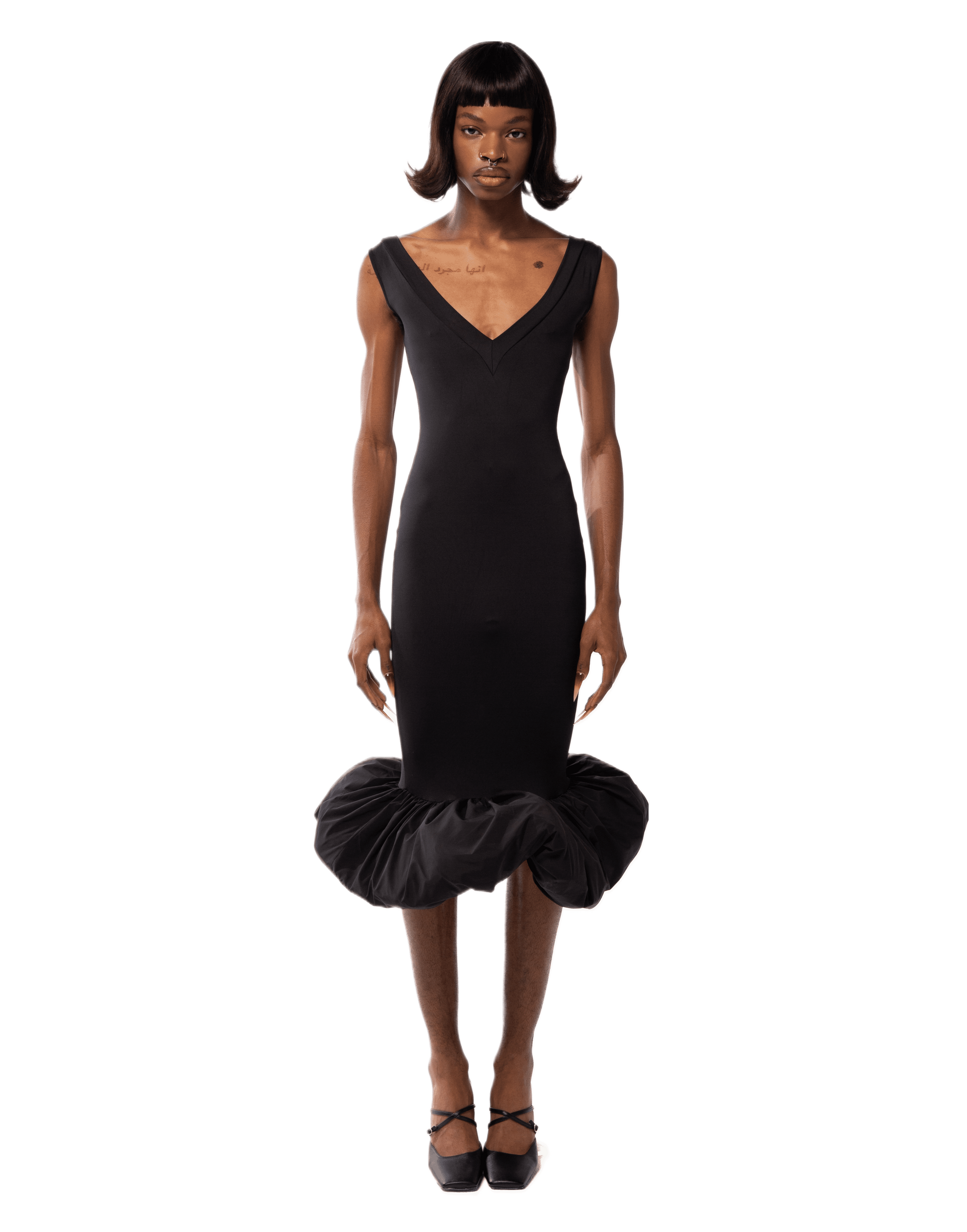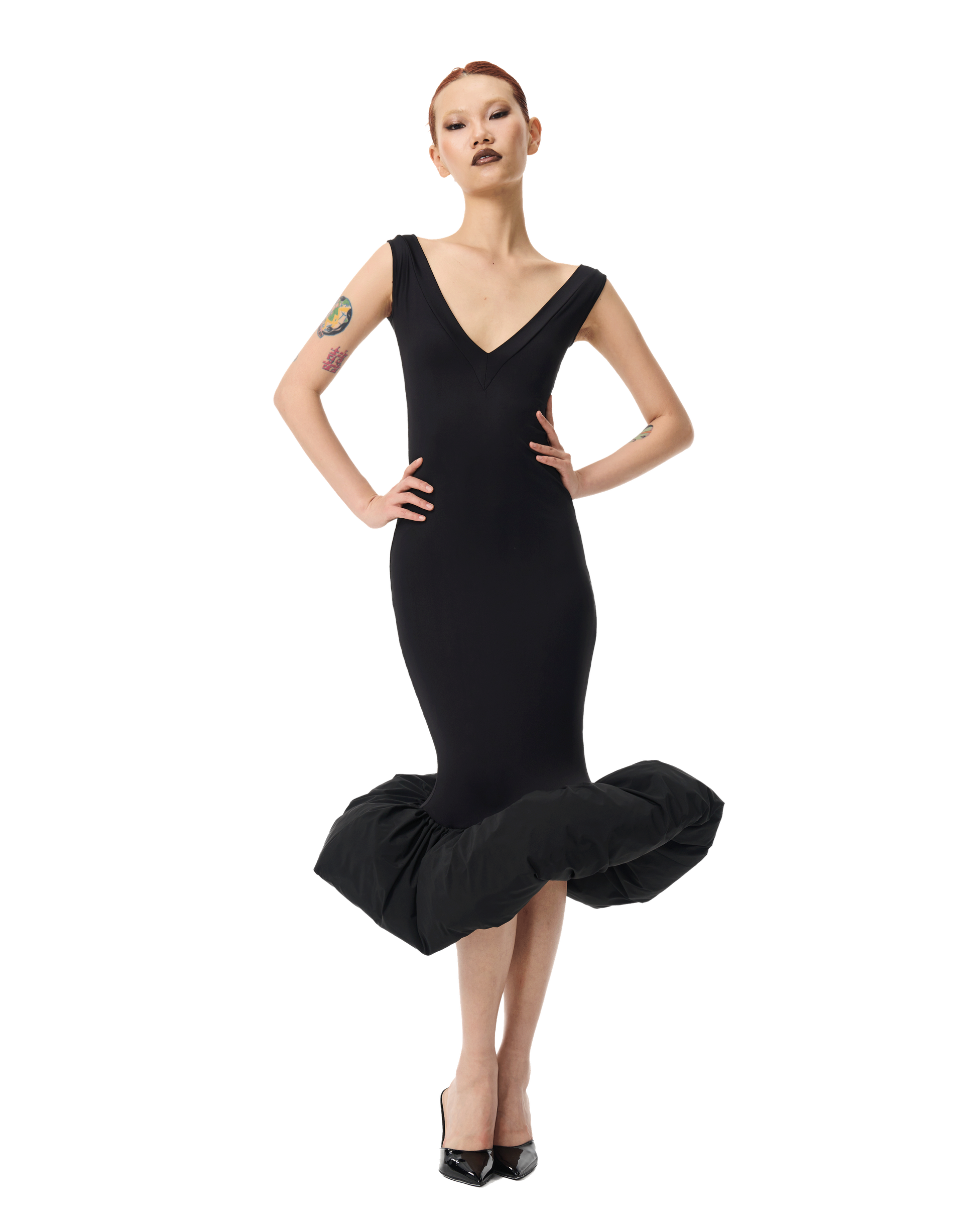 The V-Neck Cloud Dress by Bad Binch TongTong embodies Bad Binch TongTong's affinity for reinventing the classic "little black dress" with a surreal edge. Immerse yourself in the sculpted elegance of this enchanting masterpiece, where a double-fold V-neckline adds a touch of sophistication to the off-the-shoulder design, creating a harmonious blend of classic and contemporary. Embrace the transformative power of the Cloud Dress, where the puffed hem adds a whimsical finish, elevating your ensemble with playful charm and ensuring a captivating statement for any occasion. 85% Nylon Made in China. Model 1: 5'8" and is wearing size S. Model 2: 6' and is wearing size S. |